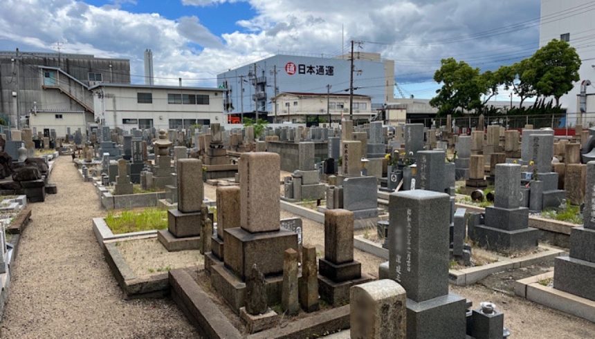 イオン長田南ショッピングモールとノエビアスタジアム神戸との中間地点に墓地があります。