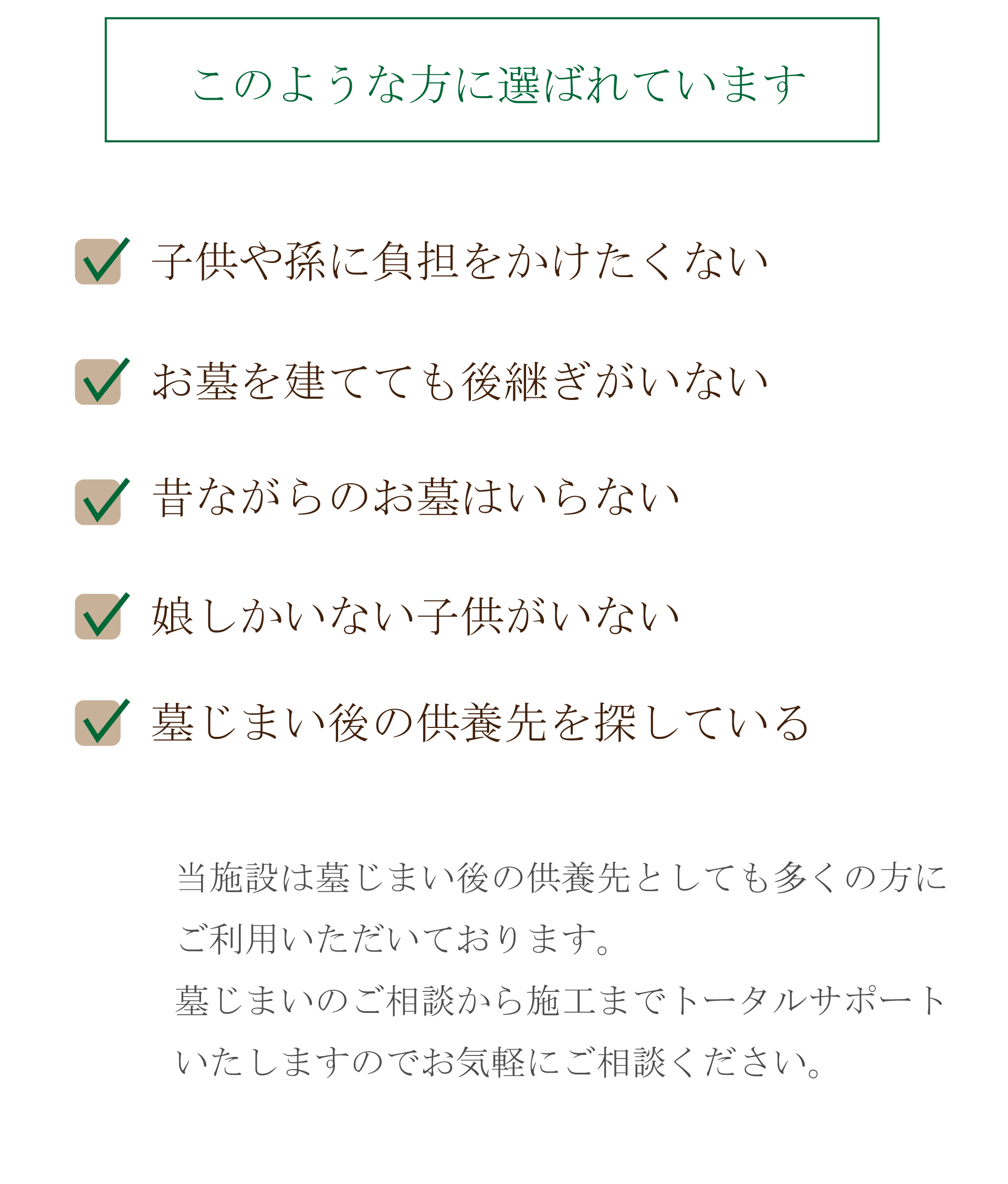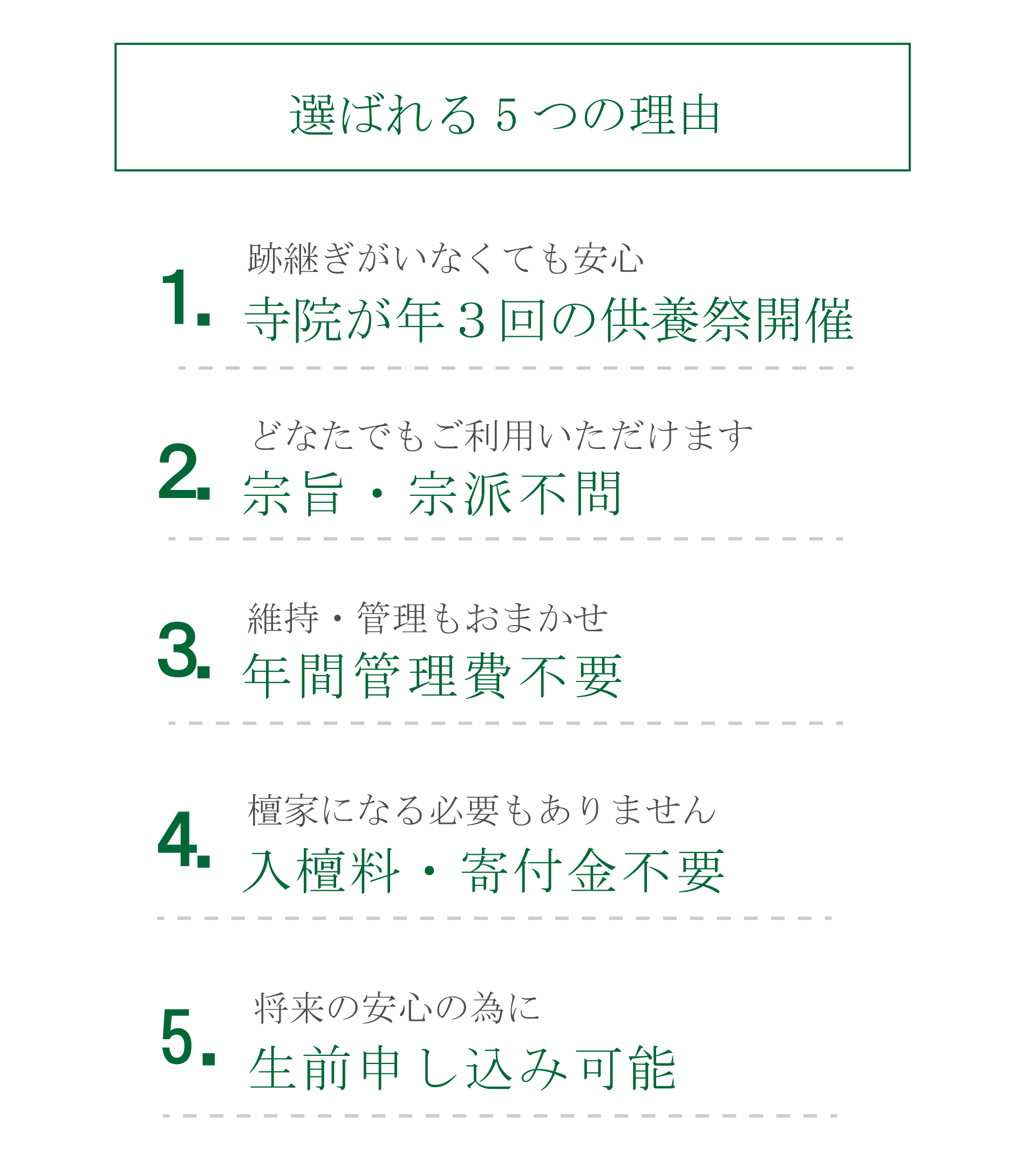 加古川エリアで圧倒的な支持を得ている人気の5カ寺なら、由緒ある歴史と明朗な費用、そして次世代に負担を残さない手厚い永代供養により、多くの方が「ここに決めて良かった」と納得し申し込まれています。