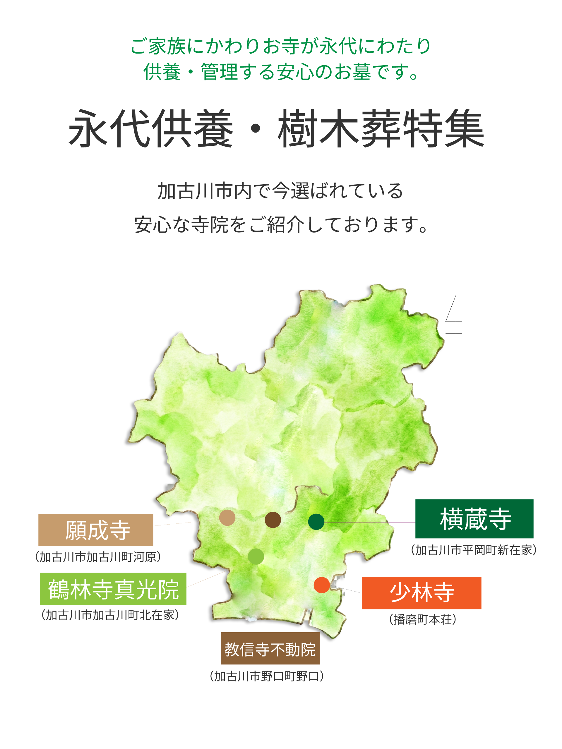 写真だけでは分からない清々しい空気感や本当の安心感を確かめに、まずは各お寺のページをご覧いただき、ぜひお気軽に現地見学へお越しください。