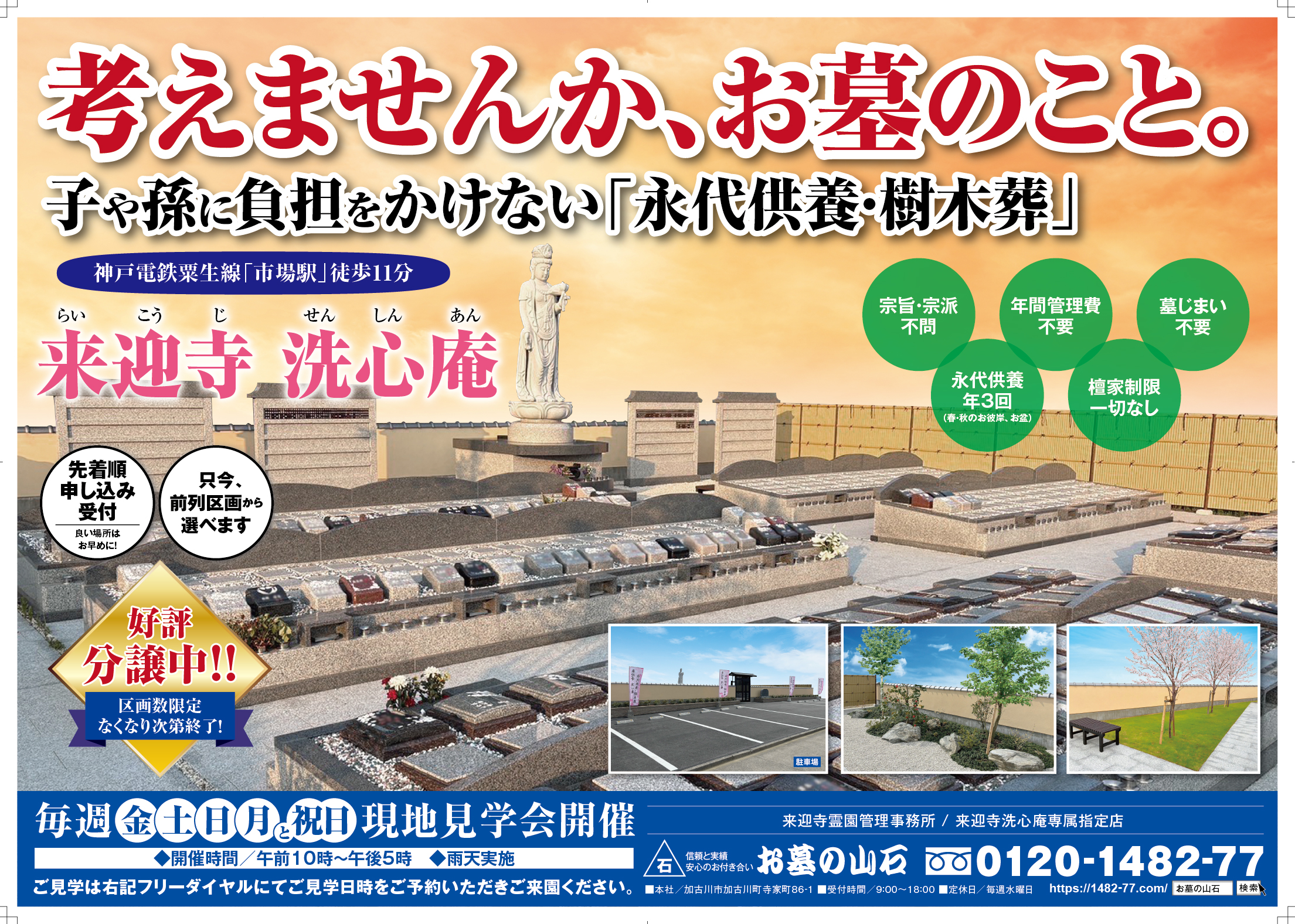 小野市や三木市内にお住いの方に人気の『永代供養・樹木葬』来迎寺洗心庵好評分譲中‼