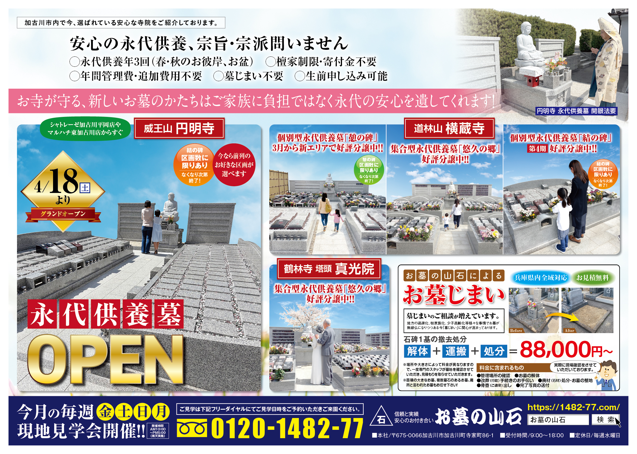 お墓の山石は4月の毎週金・土・日・月に加古川市内で今、選ばれている